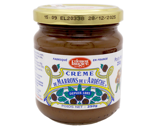 フランスNo.1シェアを誇るCLEMENT FAUGIER(クレマンフォジエ)社のマロンクリーム。 保存料や着色料など、添加物を一切使用せず、自然に生育している天然の栗のみを使用しています。職人的技術と革新的な製法を用いて、1885年の発売当初から変わらぬ味を守り続け何世代にもわたって愛されてきたベストセラー。細かく砕いたマロングラッセが入っているため、栗の味わいがより一層引き立っています。 栗の甘みが強いので、ホイップした生クリームと合わせるだけで手軽なモンブランクリームが出来あがります。また、そのままパンの巻き込みにもおすすめです。  富澤商店オンラインショップ