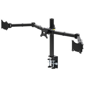 "3画面のマルチ画面に最適なディスプレイアーム。同じ高さに調整でき、3画面を横並びにできるモニターアーム。クランプでしっかり固定。27インチまで対応。【WEB限定商品】"