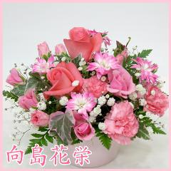 ピンクのバラとカーネーションの可愛いアレンジメント