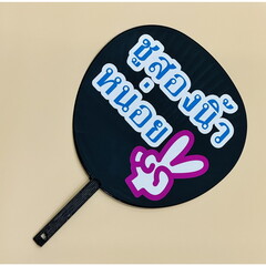 『ずぼらうちわタイ語バージョン』は、片面にファンサ用のタイ語メッセージ付きのうちわです。裏面は無地になっているので、推しの名前やメッセージを貼り付けてオリジナルうちわが作れます。サイズ:約420×295mm素材:コート紙 骨 PP(黒)