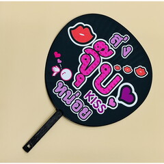 『ずぼらうちわタイ語バージョン』は、片面にファンサ用のタイ語メッセージ付きのうちわです。裏面は無地になっているので、推しの名前やメッセージを貼り付けてオリジナルうちわが作れます。サイズ:約420×295mm素材:コート紙 骨 PP(黒)