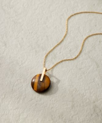 2026 Spring & Summer天然石の温もりとメタルの輝きを楽しむ、ワントップネックレス■デザイン・素材丸みのある天然石のトップに直線的なゴールドのバー金具をあしらった、異素材のコントラストが美しいネックレスです。自然な風合いが魅力の天然石と、光沢のある金属パーツを組み合わせています。天然石が持つ唯一無二の模様や色合いが、シンプルなコーディネートに奥行きと個性をプラス。天然素材を使用しているため、石の模様や色味には一点一点個体差があり、それぞれの石が持つ豊かな表情をお楽しみいただけます。肌馴染みの良いゴールドカラーのチェーンは繊細な輝きを放ち、大人の女性にふさわしい上品な仕上がりです。スライドボール仕様によりチェーンの長さをスムーズに調整できるため、合わせるトップスの襟ぐりやその日の気分によって自在にアレンジを楽しめるのが魅力です。ハイネックのトップスの上から長めに着けたり、シャツの胸元に合わせて短めに調整したりと、オンオフ問わず多彩なスタイリングにマッチします。カラーは、縞模様が美しく柔らかい印象のダークブラウン(035)、白地に黒の斑点がモダンな印象のモノトーン(#305)、深みのある色合いがシックで落ち着いたダークグリーン(#365)、乳白色が優しげで洗練されたアイボリー(#002)の4色展開です。※画像はサンプルを使用している為、実際にお届けする商品と仕様が異なる場合がございます。